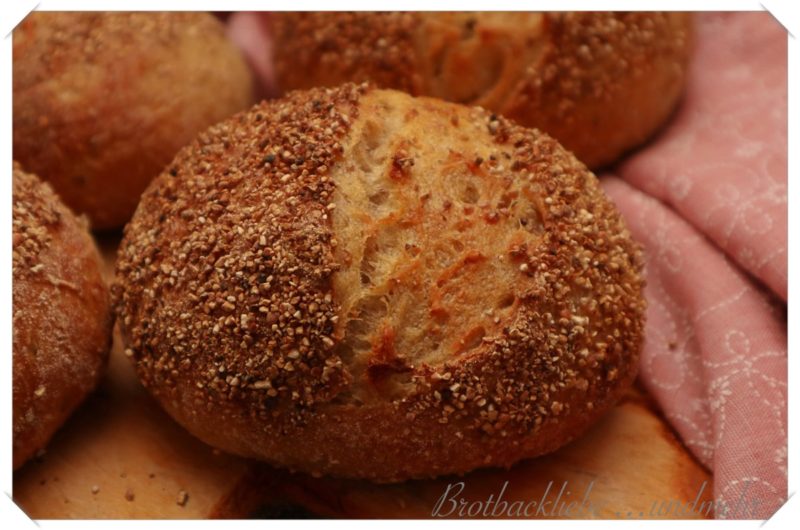 Nach vielen Abstechbrötchen war mir mal wieder danach, Brötchen zu formen. Ich hatte noch gekochte Kartoffeln vom Vortag übrig, die mit in den Teig gewandert sind. Damit die Brötchen schön fluffig werden, habe ich einen Hefevorteig angesetzt und das tolle Baguettemehl T65 von bongu verwendet. Im Teig und als Topping habe ich gemälzte Weizenkeime, die sogenannten Eclats, genommen. Ihr könnt sie im Teig auch weglassen und ein anderes Topping nach Wahl nehmen. Sie bringen auf jeden Fall mehr Aroma und Geschmack in die Brötchen.