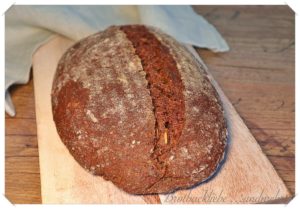 Ich habe am Vorabend ein Quellstück mit ganz viel Saaten, Schrot und Flocken gemacht. In den Teig kommen UrDinkel-Vollkornmehl, etwas Waldstauden-Vollkornmehl, Buttermilch und aufgefrischter Sauerteig. Wenn Dein Sauerteig richtig fit ist, kannst du die Hefe bedenkenlos weglassen und den Teig eventuell etwas länger in der Stückgare gehen lassen.