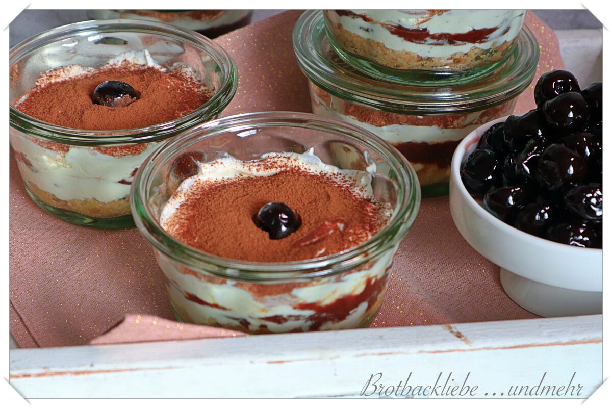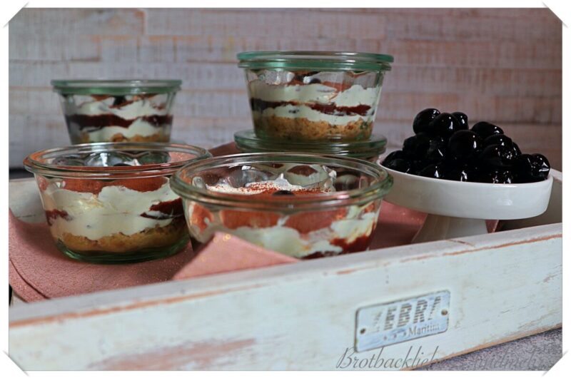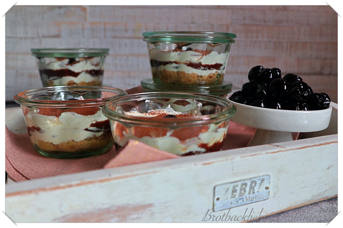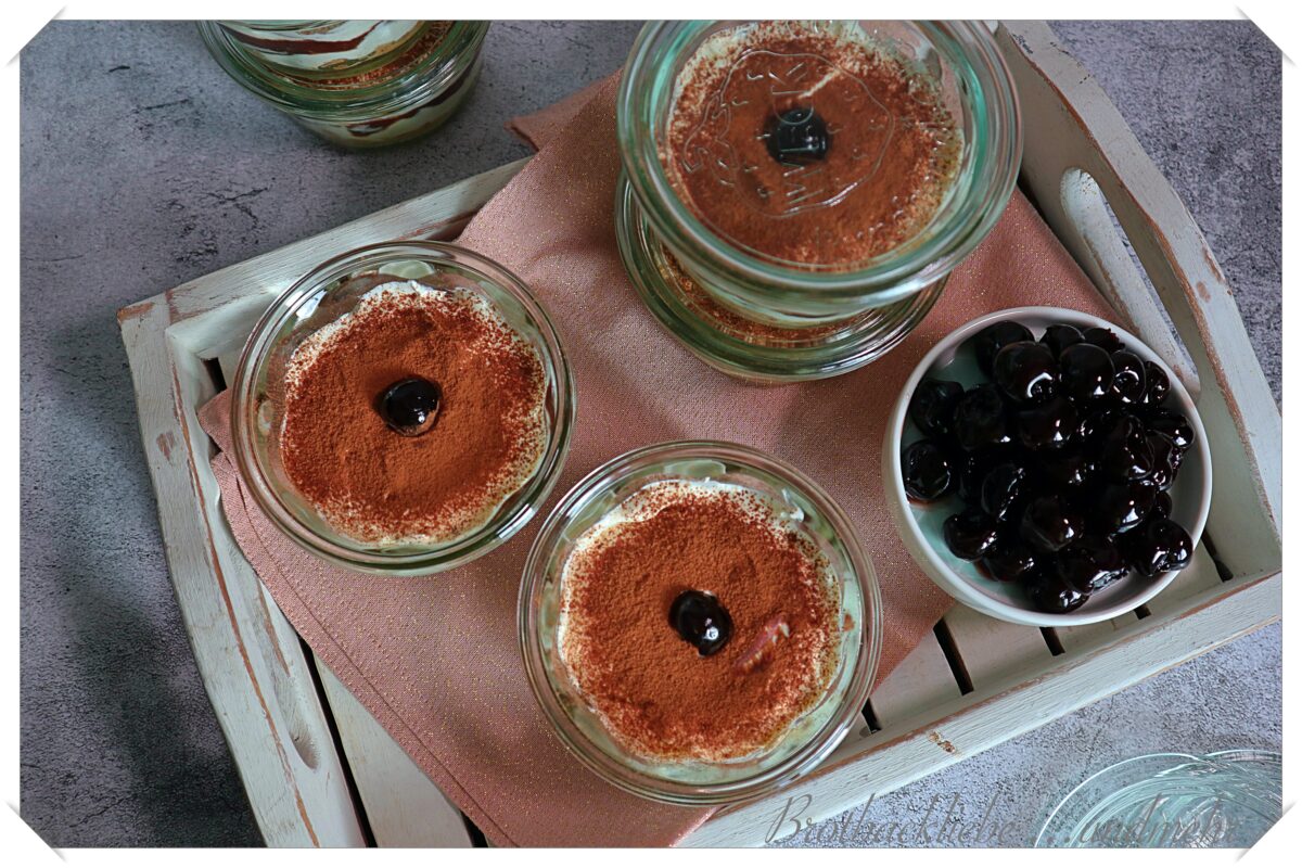 Für unseren Besuch habe ich ein Kirsch-Tiramisu gemacht. Dafür habe ich die Amarenakirschen ohne Sirup verwendet.